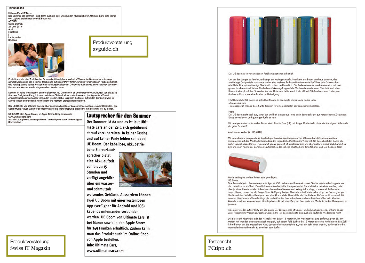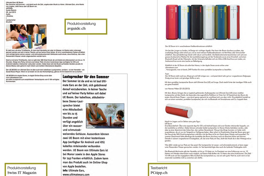UE BOOM erhält in kurzer Zeit eine hohe Bekanntheit im Schweizer Markt. Die Medienberichterstattung ist ein runder Erfolg. Exemplarisch einige Beispiele:
