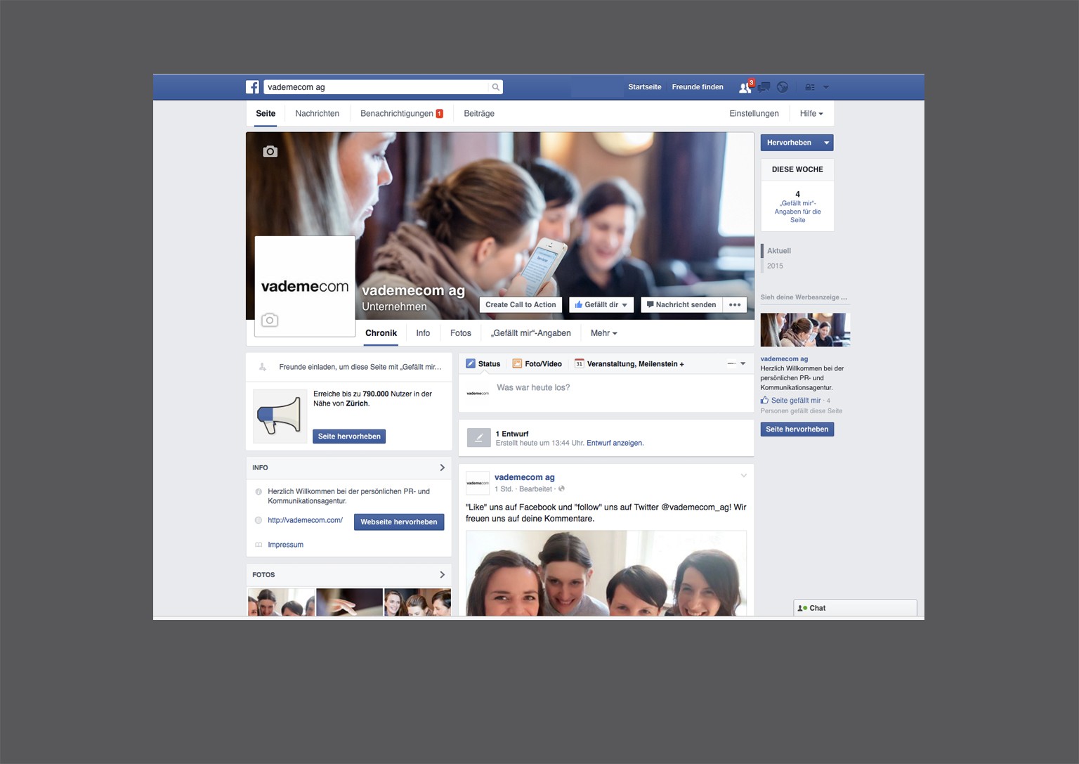 In unserem Blogazine finden Sie Gedanken, Informationen und Meinungen zu Themen, die unsere Branche betreffen, die uns begeistern, interessieren und zum Denken anregen sowie Neuigkeiten zu uns, zu unseren Kunden und zu unserer Branche. Auf Facebook heissen wir Sie quasi im vademecom Wohnzimmer willkommen und auf Twitter wollen wir insbesondere die Wege zu unserem Journalistennetzwerk verkürzen und beliefern es mit verdichteten News und Informationen.